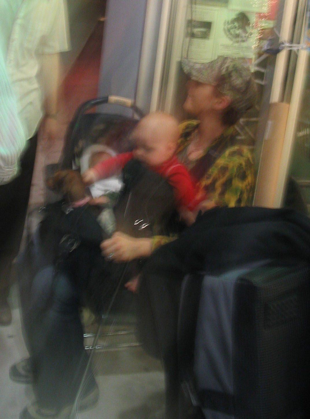 Camo lady + baby + weiner dog-in-a-bag=AWESOME